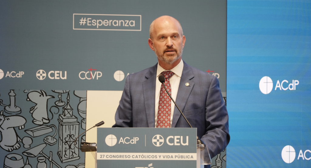 El 27.º Congreso Católicos y Vida Pública, celebrado bajo el lema «Tú, esperanza», se abrió con unas palabras de Kevin D. Roberts, presidente de la Fundación Heritage: “Debemos poner a las familias en el centro de la vida pública y llenar las lagunas con esperanza. Construir la cristiandad se logra de manera conjunta, con unidad. Lo bueno de Occidente es que une nuestra naturaleza. Podemos asociarnos y aprender los unos de otros”. Estas palabras de Kevin D. Roberts, presidente de la Fundación Heritage, han abierto el 27.º Congreso Católicos y Vida Pública, organizado por la Asociación Católica de Propagandistas y la Fundación Universitaria San Pablo CEU el 14 y 15 de noviembre. En esta edición, el tema era “Tú, esperanza”.