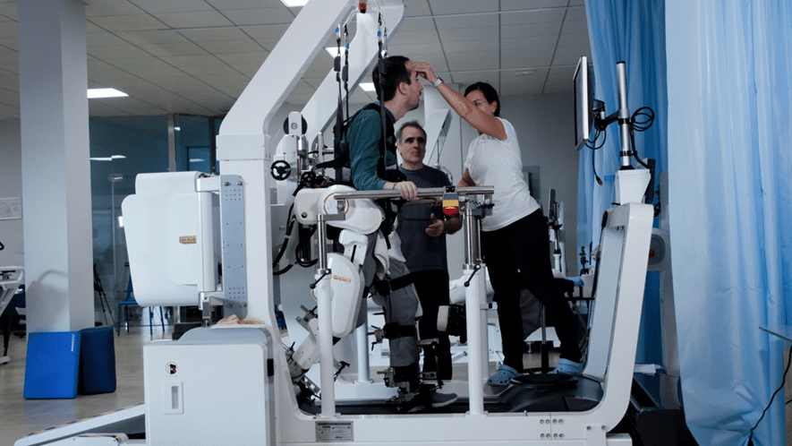 Fran en una sesión de rehabilitación con robot en la clínica Clern, Yecla (Murcia)